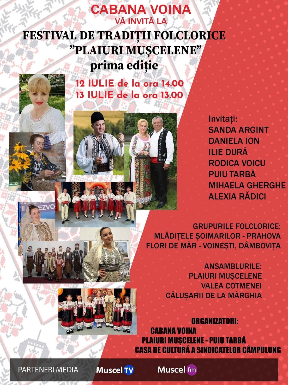 Invitații speciali sunt soliștii: Sanda Argint din Oltenia și Ilie Dură din Vaideeni, Vâlcea, dar și dâmbovițeanca Rodica Voicu și mușceleanul Puiu Tarbă. Alături de ei vor mai urca pe scenă Ana Maria Cârstina, solist vocal la Doina Argeșului precum și tinerele Daniela Ion, Mihaela Gherghe și Alexia Rădici. Vor mai evolua ansamblurile „Plaiuri Mușcelene” cu soliștii: Maria Ghiorghițoiu, Mădălina Enaru, Anastasia Onofreiciuc, Anastasia Gropan și Sofia Toader, dar și Ansamblul „Argeșul” din comuna Boteni- Argeș precum și „Mlădița Șoimarilor” din comuna Șoimari, Prahova, Grupul „Flori de măr” din Voinești, Dâmbovița, dar și ansamblurile de pe Valea Cotmenei și călușarii de la Mârghia, comuna Lunca Corbului, Argeș.